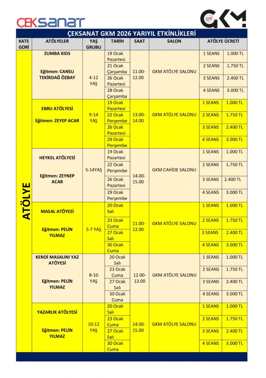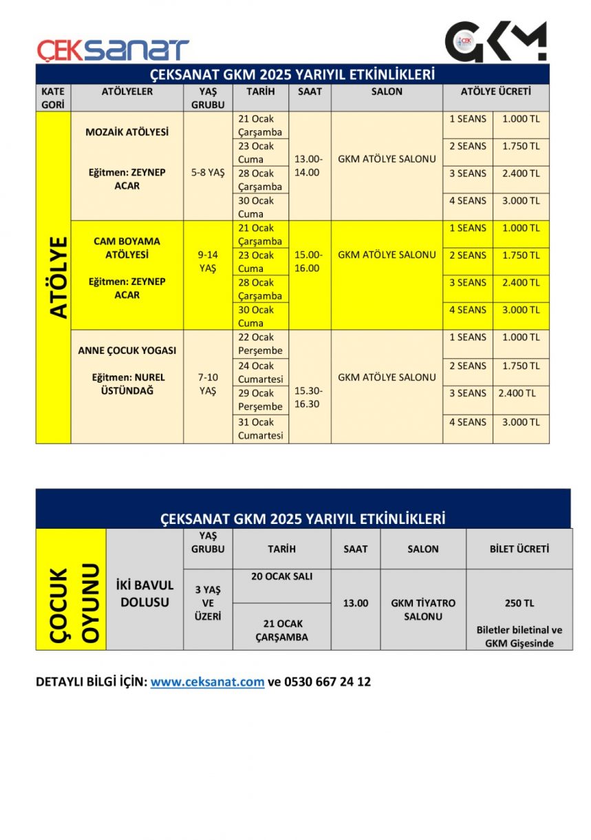 ÇEKSANAT YARIYIL TATİLİ ETKİNLİK PROGRAMI