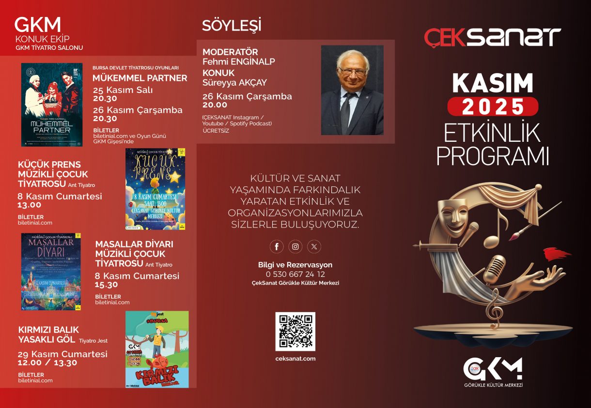 Kasım ayında konser, tiyatro, söyleşi, sergi ve birbirinden farklı etkinlikler ÇEKSANAT Görükle Kültür Merkezi'nde sizleri bekliyor!
