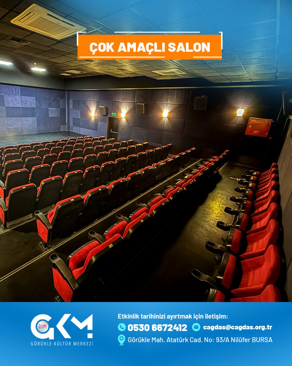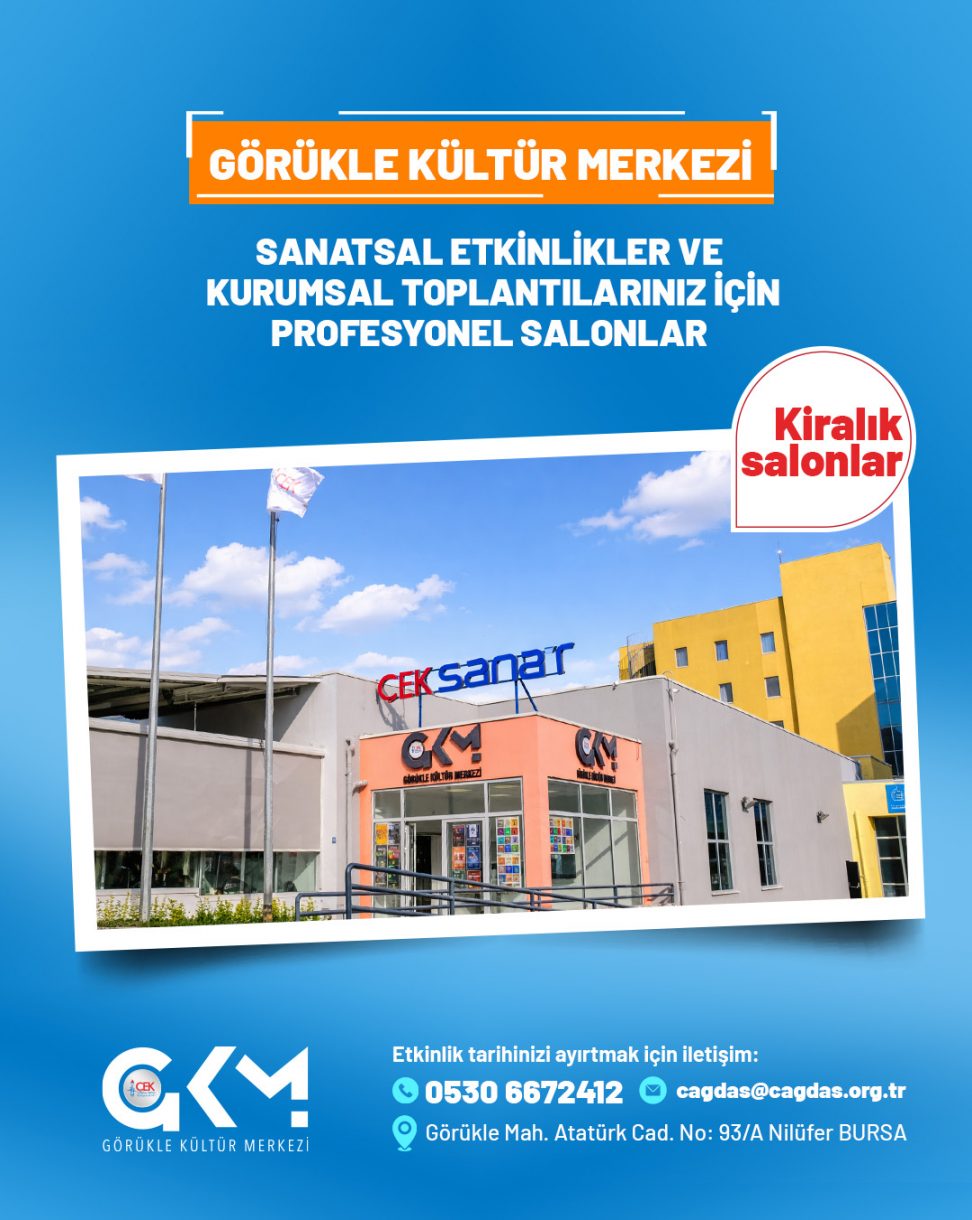 Görükle Kültür Merkezi, farklı etkinliklere uygun 5 özel salonuyla organizasyonlarınıza ev sahipliği yapıyor.